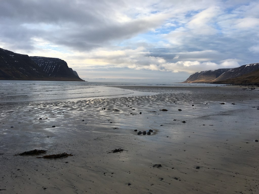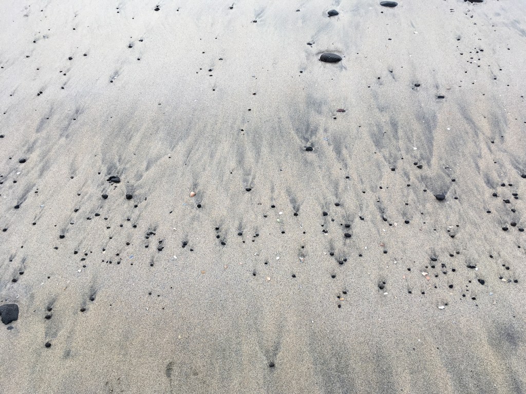 Ähnlich verhält es sich nun mit „Am Flutsaum“. Man könnte drei Motive ausmachen, die wie Wellen immer wieder an die Oberfläche des Gedichts vordringen und zurückweichen: 1) Kindheit, 2) Rauschen und 3) Gefühle. Kindheit und Gefühle bzw. Sorge sind eng verbunden: In Vers 5 stehen „Sorgengras“ und „Kindorgan“, verbunden durch Assonanz („Sorgen“ – „Organ“), direkt nebeneinander, in der sechsten Strophe ist von denen, „die / der Sorge / Kinder sind“ die Rede, in der letzten Strophe von einem „Sandmobile“ (V. 28), einem Trostobjekt für Kinder, das dem Rauschen der Brandung zum Opfer fällt.