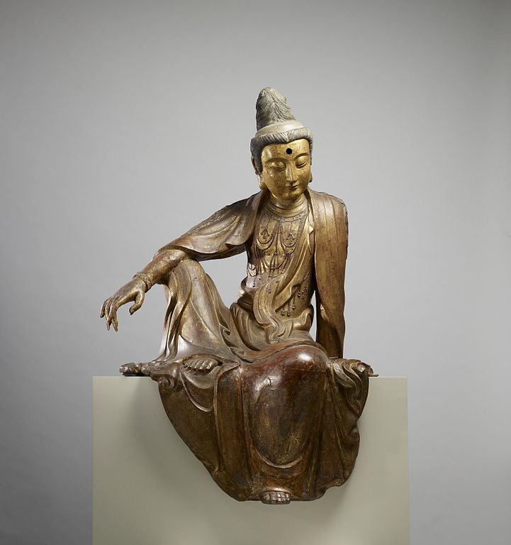 Die Weisheit des Buddha besteht aber teilweise in seinem Wissen um die Essenzlosigkeit, die Leerheit (Shunyata) der Dinge. Im Avatamsaka-Sutra wird diese Weisheit „phantomhafte Weisheit“, der Buddha selbst ein „Phantom-Meister“ genannt (Nishitani***, S. 254; vgl. „Mondphantom, Ichphantom“ im Gedicht). Gerade für diese Illusorität aller bedingten Phänomene wurde ebenso häufig das Bild des Mondes, der sich im Wasser spiegelt, gebraucht. So gibt es in der ostasiatischen Kunst das Motiv des „Wasser-Mond-Guanyins“. Guanyin (jap. Kannon) ist ein Bodhisattva, der manchmal als Mann, manchmal als Frau auftritt. Der „Wasser-Mond-Guanyin“ ist eine typisierte Darstellung Guanyins (als Gemälde oder Statue), die ihn/sie zeigt, wie er/sie auf die Spiegelung des Mondes in einem Gewässer blickt. Der Mond gilt hier als Metapher für die angesprochene Illusorität der Dinge.